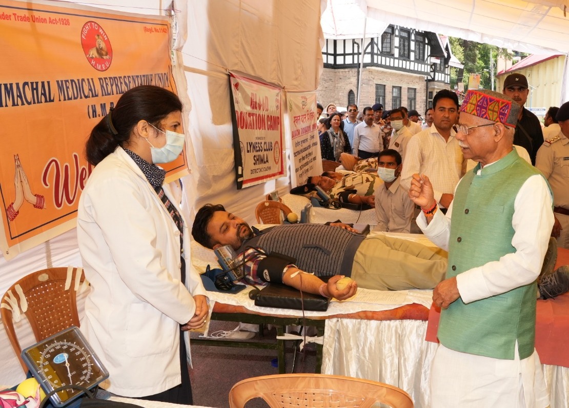 शिमला : हिमाचल प्रदेश राज्य रेडक्रॉस अस्पताल कल्याण शाखा ने विश्व रक्तदान दिवस के अवसर पर आज शिमला के ऐतिहासिक रिज मैदान में स्वैच्छिक रक्तदान शिविर का आयोजन किया। शिविर का शुभारम्भ राज्यपाल श्री शिव प्रताप शुक्ल ने किया। वह राज्य रेडक्रॉस के अध्यक्ष भी हैं।