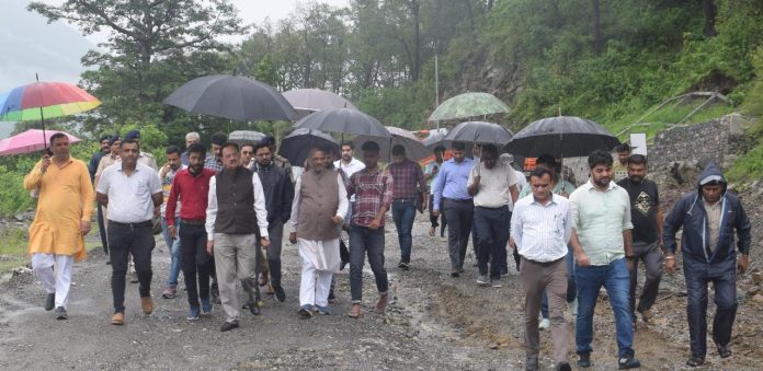 नाहन, 12 जुलाई : उद्योग, संसदीय कार्य तथा आयुष मंत्री हर्षवर्धन चौहान ने आज राष्ट्रीय राजमार्ग-707 पांवटा-शिलाई का निरीक्षण किया जो हाल ही में भारी बरसात के कारण राजबन के समीप कच्ची ढ़ांक के पास क्षतिग्रस्त हो गया था।