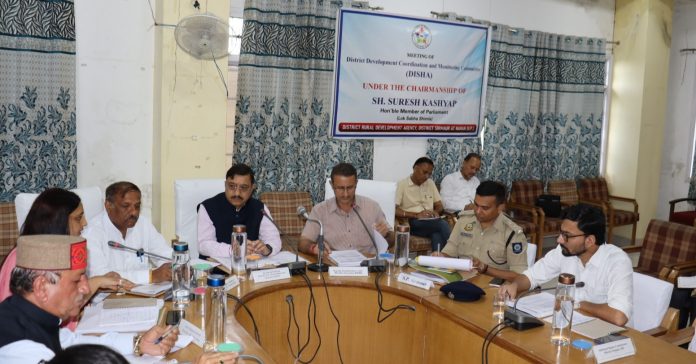 सद सुरेश कश्यप आज शनिवार को नाहन में केन्द्र प्रायोजित योजनाओं और कार्यों की प्रगति सम्बन्धी समीक्षा के लिए आहूत जिला विकास समन्वय एवं निगरानी समिति (दिशा) की बैठक की अध्यक्षता कर रहे थे।