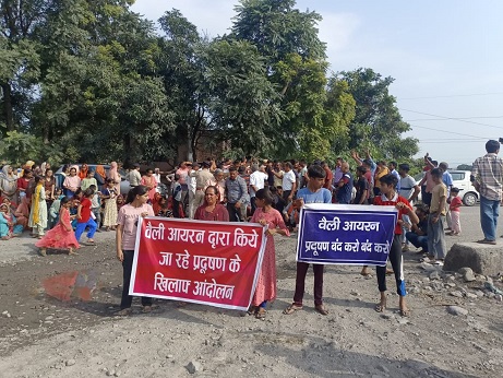 दरअसल यहां आयरन वाली फैक्ट्री द्वारा फैलाई जा रहे प्रदूषण से लोगों परेशान है। लोगों का कहना है कि पिछले कुछ सालों से यहां पर फैक्ट्री द्वारा प्रदूषण फैलाया जा रहा है और फैक्ट्री से निकलने वाले काले धुएं से एक तरफ जहां लोग गंभीर बीमारी की चपेट में आ रहे हैं। वहीं उनके फसलें भी तबाह हो रही है। लोगों का यह कहना है कि यह फैक्ट्री पिछले कई सालों से चल रही है मगर पिछले तीन-चार सालों से यहां पर नियमों को तार पर रखकर काली तार जलाई जा रही है जिसे निकालने वाला काला धुआं लोगों के लिए परेशानी का सबब बन चुका है। धरना स्थल पर कई ऐसे लोग पहुंचे जो इस फैक्ट्री के प्रदूषण के कारण गंभीर बीमारियों की चपेट में आए है।