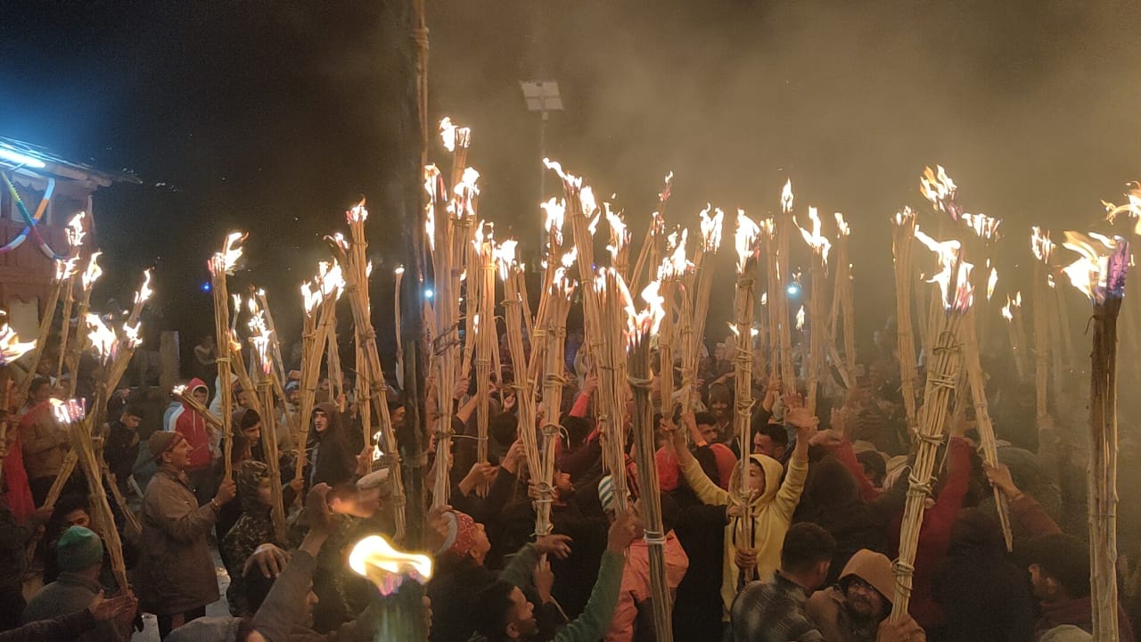 नाहन : सिरमौर जिला के दुर्गम गिरिपार इलाके में दीपावाली का जश्न लगातार जारी है क्षेत्र में 3 से 4 दिन तक दीपावली का त्यौहार मनाया जाता है। मंगलवार सुबह करीब 4:00 बजे गिरीपार इलाके के कई गांव में मशाल यात्राएं निकाली गई जिसमें बड़ी संख्या में लोगों ने हिस्सा लिया। इस दौरान पारंपरिक ढोल नगाड़ों की धुनों पर लोगो ने रासा नृत्य भी किया ।