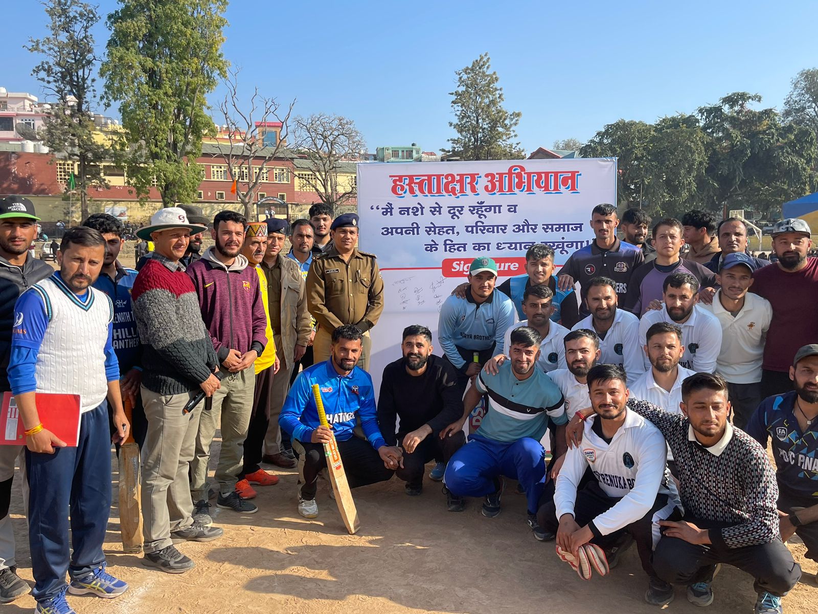 नाहन: एसपी सिरमौर रमन कुमार मीणा ने आज नाहन शहर के ऐतिहासिक चौगान मैदान मे हिमालयन स्पोर्ट्स क्लब द्वारा आयोजित की जा रही महाराणा प्रताप क्रिकेट प्रतियोगिता के दौरान नशे के खिलाफ चलाए जा रहे हस्ताक्षर अभियान का शुभारंभ किया।