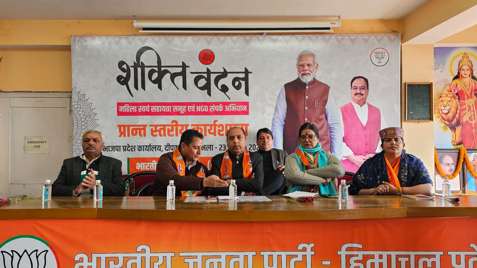इस अवसर पर नेता प्रतिपक्ष जयराम ठाकुर, महामंत्री बिहारी लाल शर्मा, महिला मोर्चा अध्यक्ष वंदना योगी, पूर्व प्रत्याशी संजय सूद,  महामंत्री अंजना शर्मा, प्रदेश उपाध्यक्षा अनिता वर्मा, प्रदेश मीडिया प्रभारी रमा ठाकुर जिलाध्यक्ष प्रेम ठाकुर,  जिलाध्यक्ष महिला मोर्चा विनती शर्मा उपस्थित रहे।