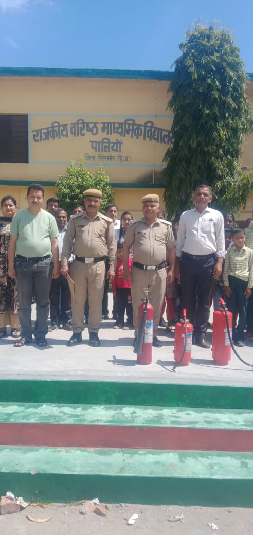 नाहन 18 अप्रैल: जिला सिरमौर के राजकीय वरिष्ठ माध्यमिक पाठशाला, पालियों में आज दिनांक 18 अप्रैल को अग्निशमन विभाग की दमकल चौकी काला अंब के कर्मचारियों ने स्कूल के लगभग 30 विद्यार्थियों एवं 08 अध्यापकों को अग्नि सुरक्षा के बारे में विस्तृत रूप से जानकारी दी।
