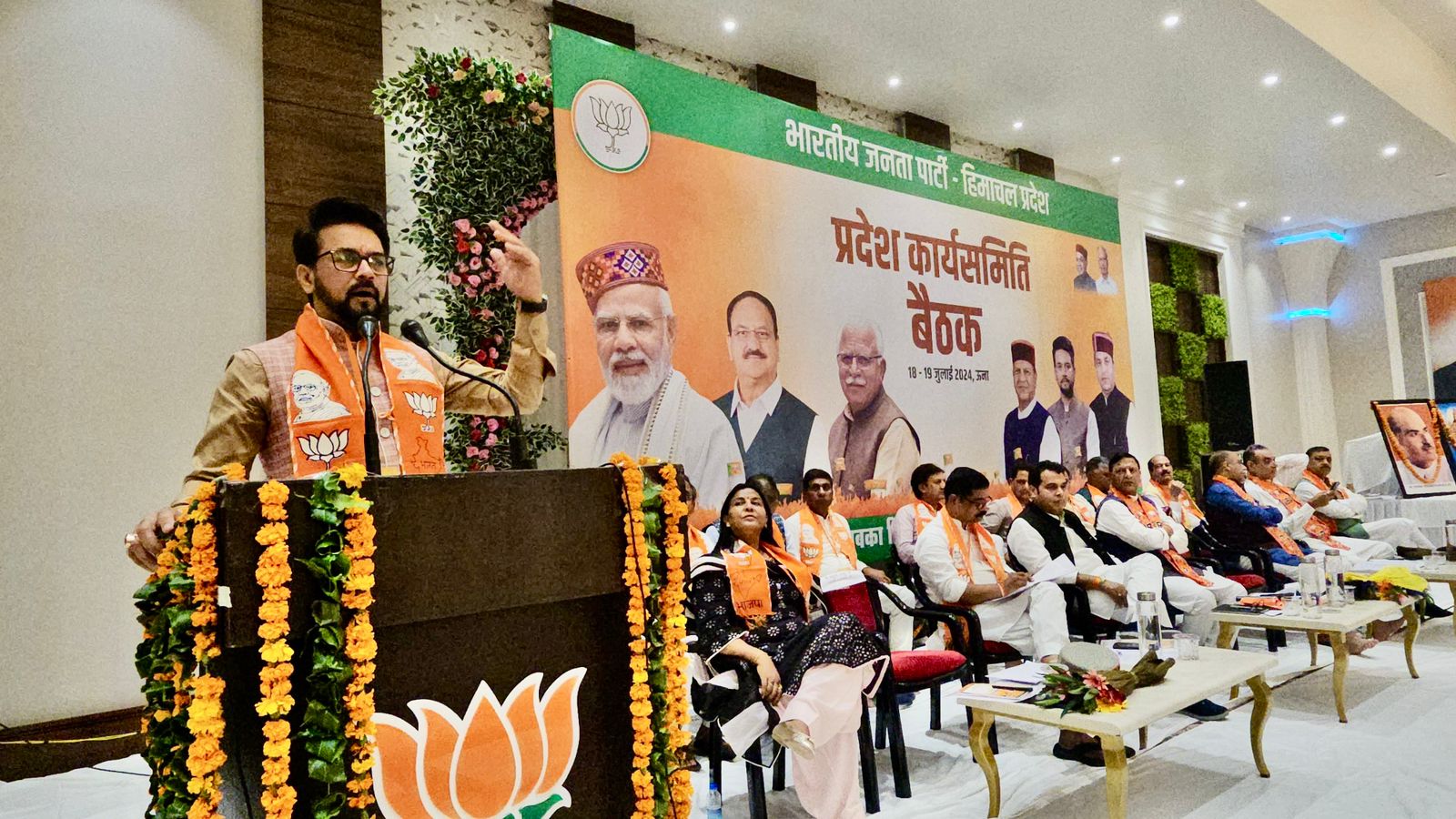 पूर्व केंद्रीय मंत्री व हमीरपुर लोकसभा क्षेत्र से सांसद अनुराग सिंह ठाकुर ऊना में हिमाचल प्रदेश भाजपा कार्यसमिति की बैठक में गणमान्यों के साथ उपस्थित रहकर संगठन से जुड़े विषयों पर चर्चा में सम्मिलित रहे। भाजपा हिमाचल प्रदेश कार्यसमिति की बैठक के मध्य पार्टी के गणमान्यों व कार्यकर्ताओं के समक्ष भारतीय जनता पार्टी के राजनैतिक प्रस्ताव का अनुमोदन किया।