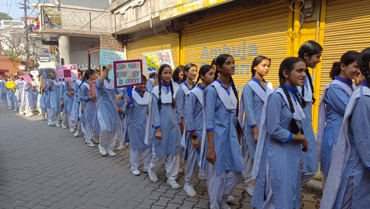 नशा जागरूकता को लेकर सड़कों पर उतरे सैकड़ों छात्र, रैली में करीब 800 छात्र हुए शामिल