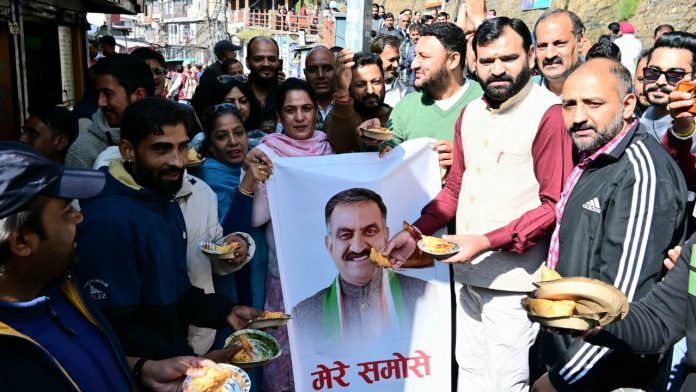 शिमला : हिमाचल के समोसे जांच प्रकरण को लेकर प्रदेश की पूरे देश में किरकिरी हो रही है इसी बीच भाजपा युवा मोर्चा ने शेरे पंजाब से लोवर बाजार में समोसा जलूस एवं वितरण कार्यक्रम का आयोजन किया जिसमें युवा मोर्चा के कार्यकर्ताओं ने हाथों और प्लेटों पर समोसे रख इस प्रकरण की कड़ी निंदा की। इस मार्च का आयोजन भाजपा युवा मोर्चा के प्रदेश अध्यक्ष तिलक राज की अध्यक्षता में किया गया, इस उपलक्ष्य पर युवा मोर्चा के कार्यकर्ताओं ने कांग्रेस सरकार के खिलाफ जम कर नारेबाजी भी की।