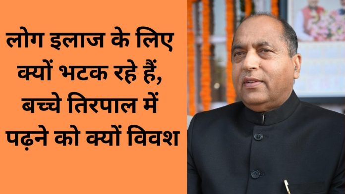 जयराम ठाकुर ने कहा कि सरकार ने किसी न किसी तरह का बहाना बनाकर डेढ़ हज़ार से ज़्यादा स्कूल बंद कर दिए। जिससे स्थानीय बच्चों को भारी असुविधा हुई। आज ही समाचारों में पढ़ा कि चौपाल विधान सभा क्षेत्र के निर्वाचन में एक स्कूल में 116 बच्चे इस ठंढी में भी तिरपाल के नीचे पढ़ने को मजबूर हैं क्योंकि बारिश में स्कूल की दीवार ढह गई तो सरकार वह दीवार नहीं बनवा पाई। हैरत की बात यह है कि इसमें 28 बच्चे प्री नर्सरी के हैं। खतरे को देखते हुए स्कूल खाली करवाया और कोई अस्थाई इंतज़ाम भी नहीं किया। बिना शौचालय और अन्य सुविधाओं के तिरपाल में क्या देश के नौनिहालों का भविष्य संवरेगा? बच्चों के अभिभावक धरना देने की बात का रहे हैं। सरकार आए दिन विज्ञापन छपवाती है कि हम सरकारी शिक्षा को विश्व स्तरीय बना रहे हैं और हालत यह है कि बच्चों को सुरक्षित छत तक नसीब नहीं हो पा रही है। प्रचार तंत्र सुक्खू सरकार की नाकामी को कुछ समय के लिए छुपा तो लेगा लेकिन यह हकीकत नहीं बदल सकता है। बड़ी-बड़ी बातें करने के बजाय मुख्यमंत्री को जमीनी हकीकत समझने की आवश्यकता है। प्रदेश का हर वर्ग सरकार से हताश है इसलिए मुख्यमंत्री को सब कुछ सही है का ढोंग करने, झूठे दावे और मन गढ़ंत आंकड़ों के ढोंग से बाहर आना चाहिए।