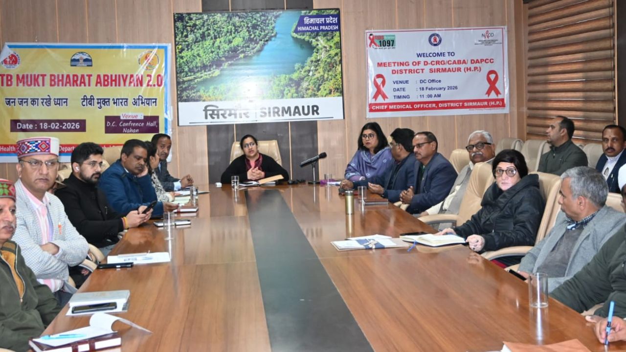नाहन : सिरमौर जिला को एचआईवी तथा क्षय रोग मुक्त बनाने के लिए संबंधित विभागों को मिलकर कार्य करना होगा ताकि जिला सिरमौर को एचआईवी तथा टी.बी. मुक्त बनाया जा सके। यह जानकारी उपयुक्त सिरमौर प्रियंका वर्मा ने आज उपायुक्त कार्यालय के सभागार में एचआईवी तथा जिला क्षय रोग उन्मूलन समिति की बैठक की अध्यक्षता करते हुए दी।